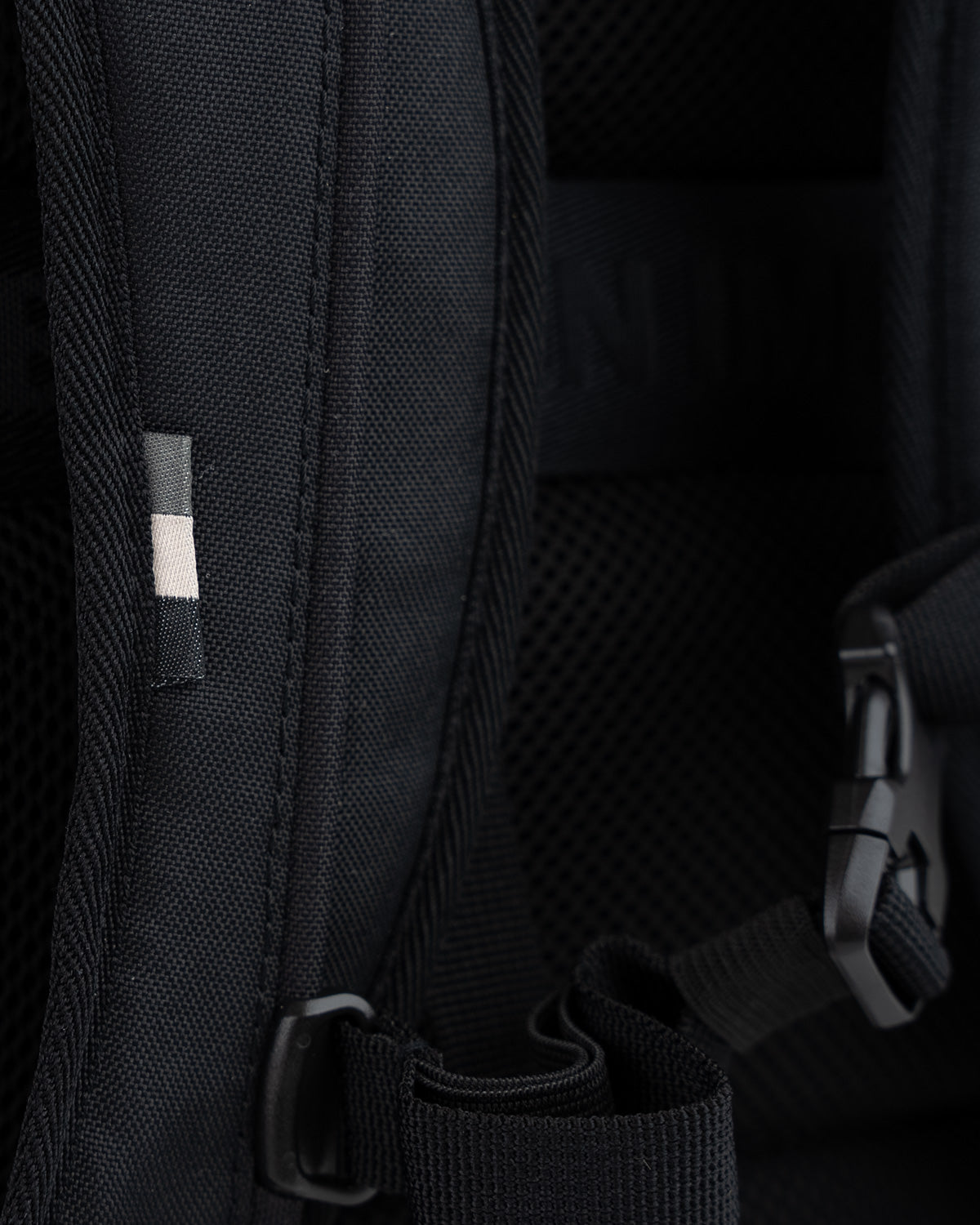 - Main fabric made of recycled Ocean Impact Plastic, lining, mesh and webbings recycled PET, closure buckles PA, strap buckles POM, padding foam PE, external zippers PU and nylon, internal zippers and Velcro PA, magnetic zipper metal