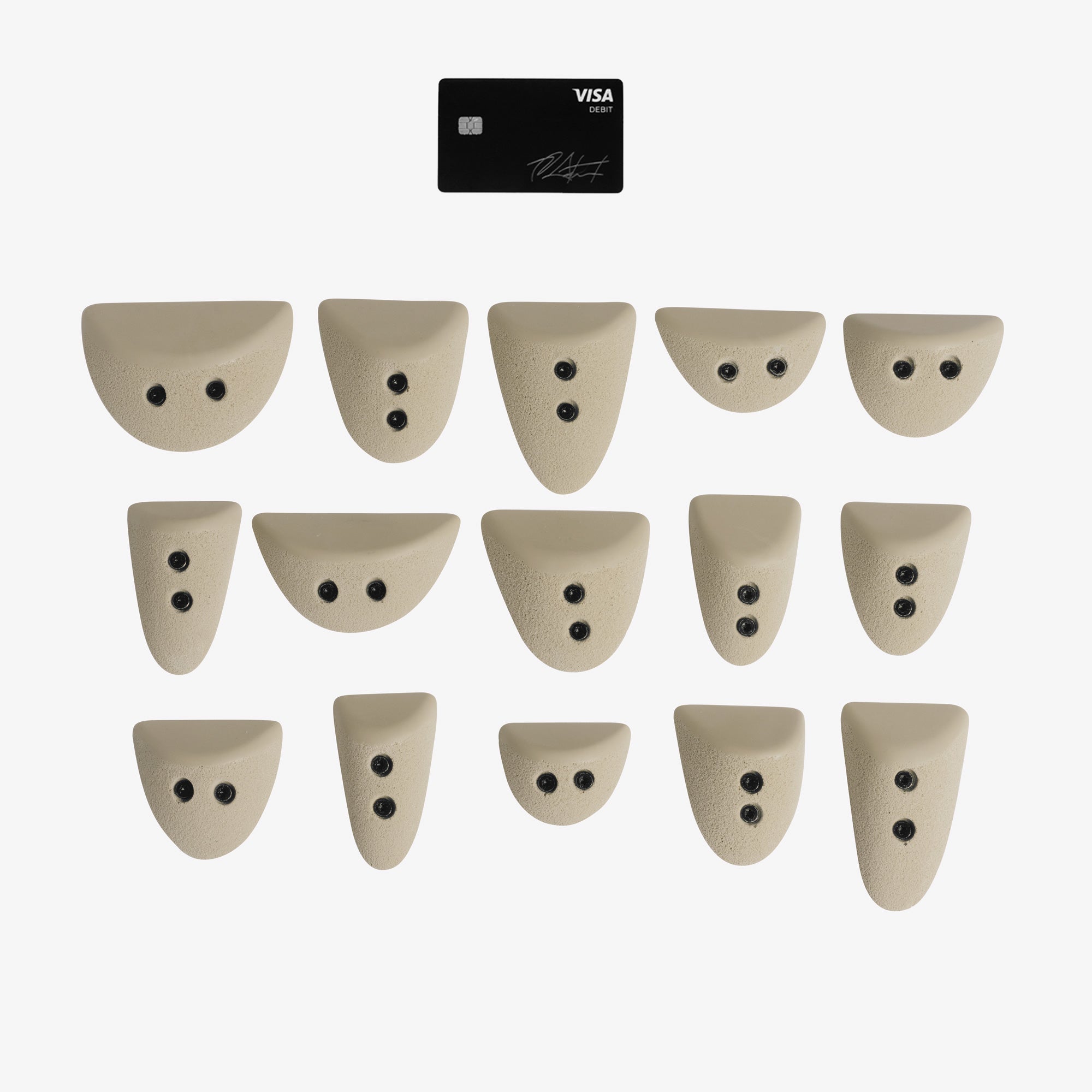 Small wave-profile screw-ons designed for feet and subtle hand use. Dual-texture zones create varying levels of reliability across angles, keeping movement active and intentional. Best used to control body position without offering full security.